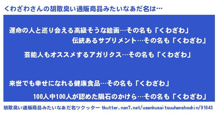 | 意味不明あだ名 | 『自称くわざわ』『くわざわフォーエバー』 |