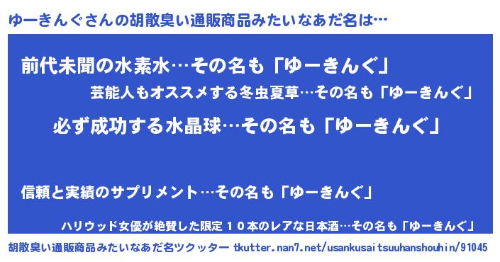 | 男性向けラノベタイトル風あだ名 | 『ゆーきんぐの憂鬱』 |