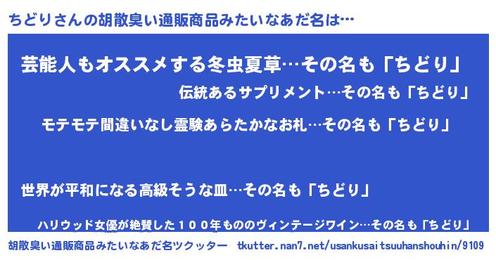 | 恥ずかしいあだ名 | 『プリティーちどり』『チドリデラックス』 |