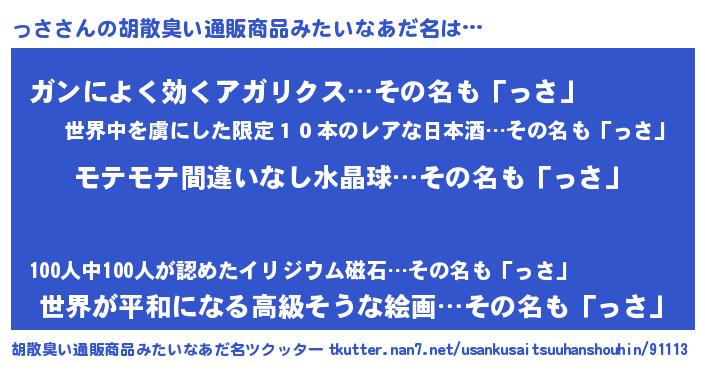| ヘコむあだ名 | 『っさにゅー』『つくし』『っさお』 |
