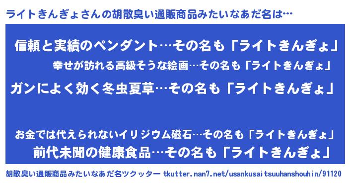 | ヘコむあだ名 | 『ライぷりん』『ライトきんぎょ(遠い目)』 |