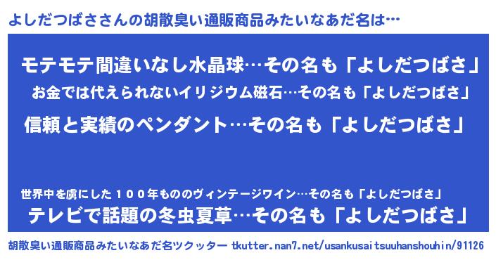 | 意味不明あだ名 | 『とにかく怪しいよしだつばさ』 |