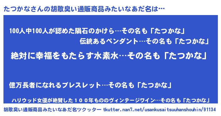 | ヘコむあだ名 | 『たつかな(苦笑)』『たつっぺ』 |