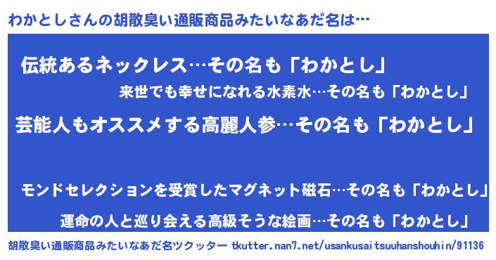 | ヘコむあだ名 | 『わかお』『豆乳』『わかとし(笑)』 |