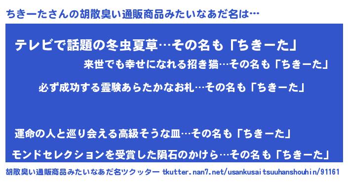 | 意味不明あだ名 | 『めかぶ科ちきーた属』『自称ちきーた』 |