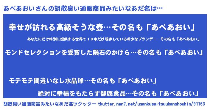 | ヒーロー風カッコイイあだ名 | 『天空の使者あべあおい』『仮面アベダー』 |