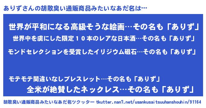 | 欧米人風あだ名 | 『アンジェラ・ありず』『ダニエルありず』 |