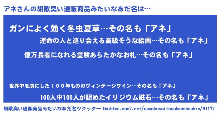| ヘコむあだ名 | 『アネっふぃ~』『牛乳』『アネ(笑)』 |