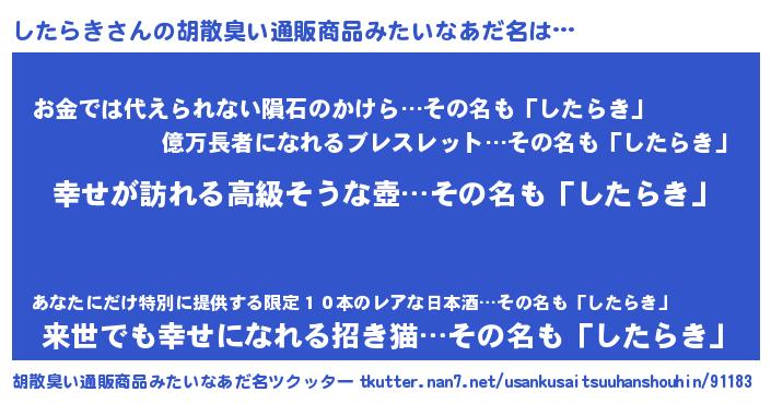 | ヒーロー風カッコイイあだ名 | 『ウルトラしたらきマン』『ネオシタラキ』 |