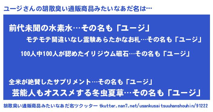 | ヒーロー風カッコイイあだ名 | 『正義の使者ユージ』『ネオユージ』 |