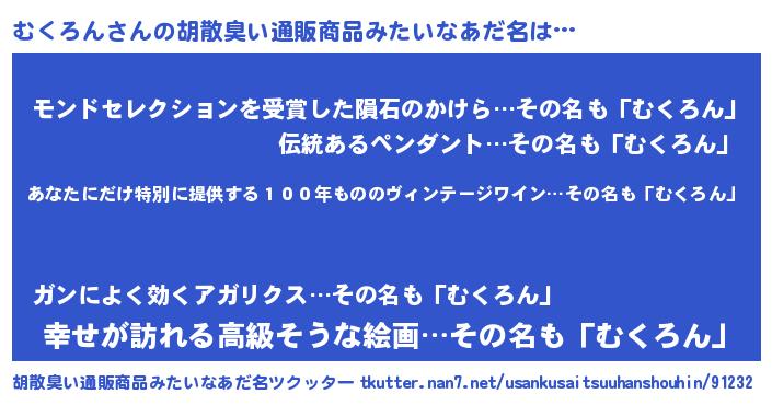 | 意味不明あだ名 | 『住所不定無職むくろん(8歳)』 |