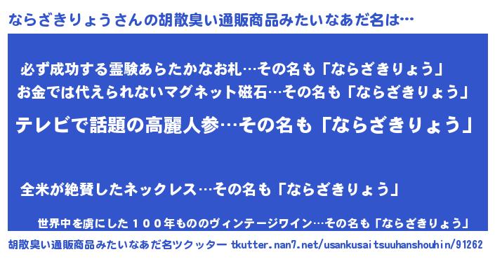 | ヘコむあだ名 | 『ならにー』『ならっぺ』『豆乳』 |
