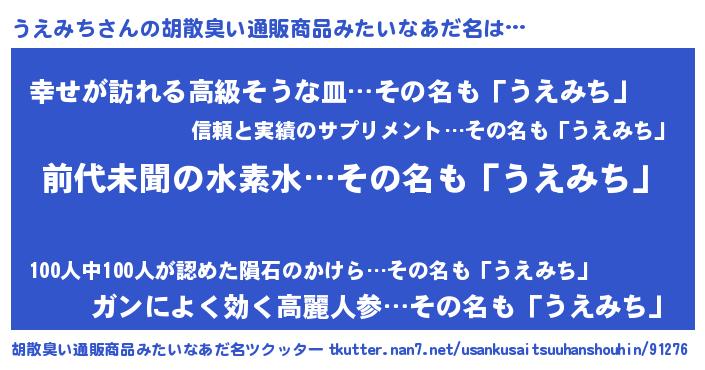 | ヘコむあだ名 | 『うえみち(遠い目)』『酢こんぶ』 |
