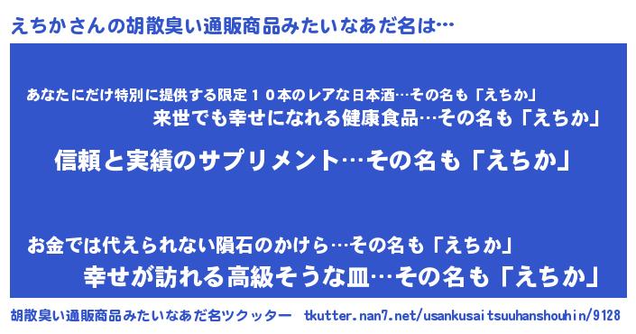 | 欧米人風あだ名 | 『トリンドルえちか』『ウサインえちか』 |