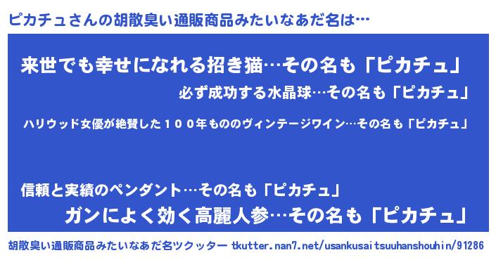 | 意味不明あだ名 | 『住所不定無職ピカチュ(1歳)』 |