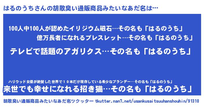 | ヘコむあだ名 | 『はるのうち(笑)』『はるにゅー』 |