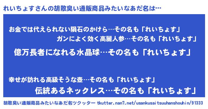 | 意味不明あだ名 | 『ペロリンれいちょす』『自称れいちょす』 |
