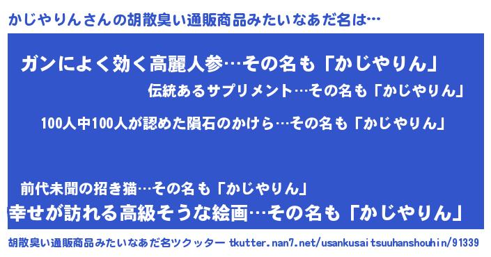 | 男性向けラノベタイトル風あだ名 | 『おまえをオタクにしてやるから、俺をかじやりんにしてくれ! 』 |