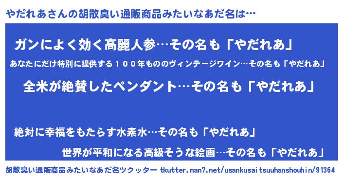 | 意味不明あだ名 | 『とにかく怪しいやだれあ』 |
