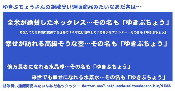 | ヒーロー風カッコイイあだ名 | 『ウルトラゆきぶちょうマン』 |
