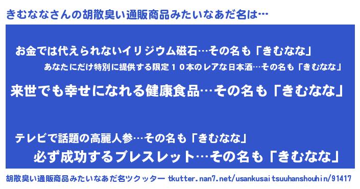 | ヘコむあだ名 | 『きむなな(爆)』『きむにゅー』 |