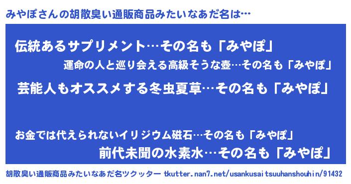 | ヘコむあだ名 | 『みやっちょ』『みやぽ(笑)』 |
