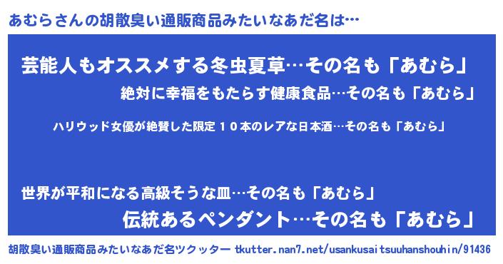 | 意味不明あだ名 | 『住所不定無職あむら(47歳)』『自称あむら』 |