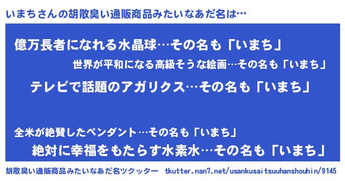 | 意味不明あだ名 | 『自称いまち』『ペロリンいまち』 |