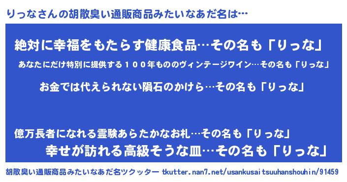 | 女子向けラノベタイトル風あだ名 | 『りっな恋絵巻』『りっなの婚約者』 |