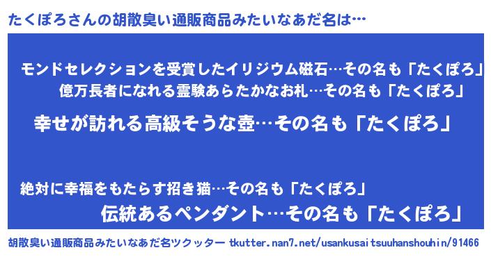| 女子向けラノベタイトル風あだ名 | 『たくぽろの雑貨屋さん』 |
