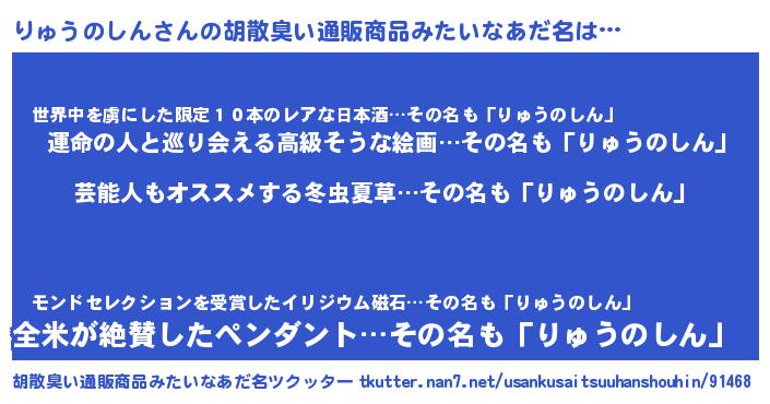 | 女子向けラノベタイトル風あだ名 | 『りゅうのしんストレイドッグス』 |