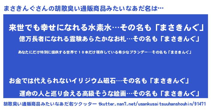 | 意味不明あだ名 | 『住所不定無職まさきんぐ(93歳)』 |