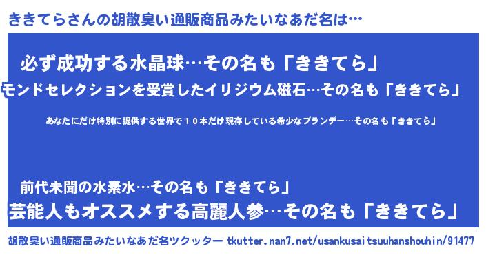 | 意味不明あだ名 | 『住所不定無職ききてら(91歳)』 |