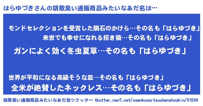 | 意味不明あだ名 | 『自称はらゆづき』『永久保存はらゆづき』 |