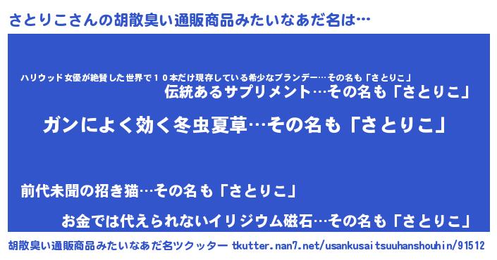 | ヘコむあだ名 | 『さとぷりん』『さとりこ(苦笑)』 |
