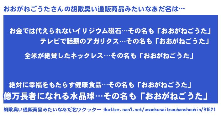 | 欧米人風あだ名 | 『ウサインおおがねごうた』 |
