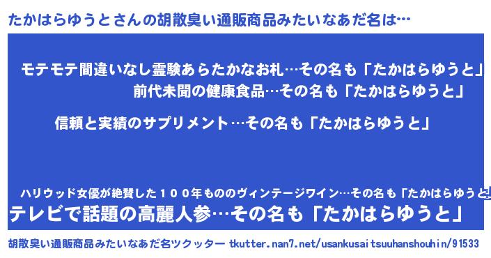 たかはらゆうとさんの胡散臭い通販商品みたいなあだ名をツクッター!