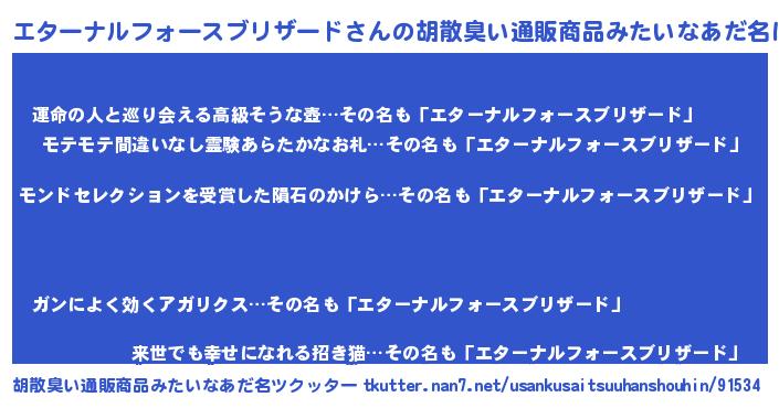 | 男性向けラノベタイトル風あだ名 | 『ノーゲーム・ノーエターナルフォースブリザード』 |