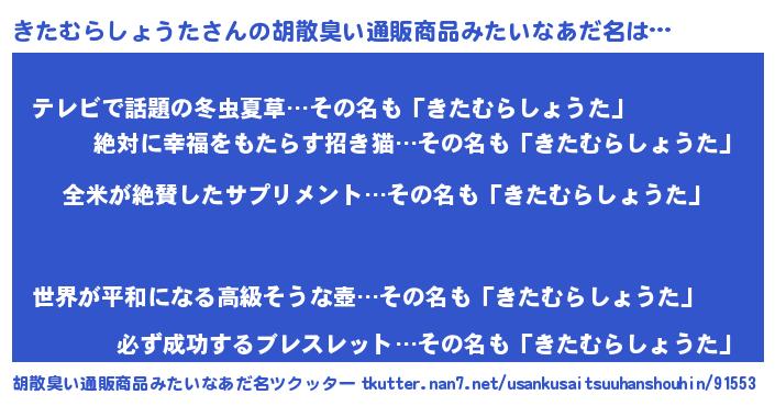 | ポケモン風あだ名 | 『ヒキタムラショウタ』『キタセウス』 |