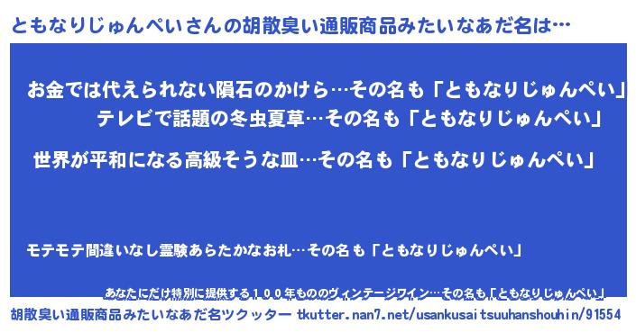 | 男性向けラノベタイトル風あだ名 | 『冴えないともなりじゅんぺいの育てかた』 |