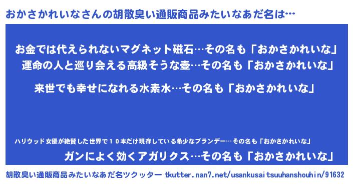 | 意味不明あだ名 | 『永久保存おかさかれいな』 |