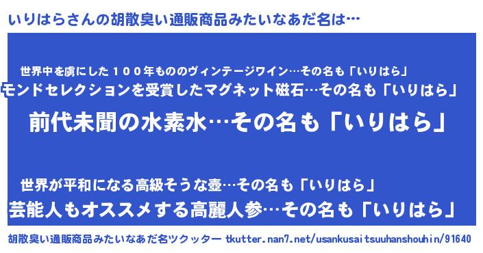 | 意味不明あだ名 | 『永久保存いりはら』『自称いりはら』 |