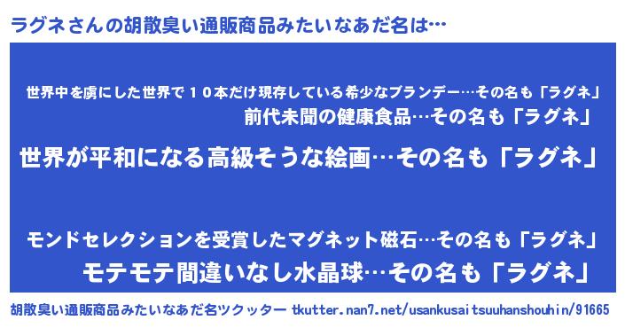 | 男性向けラノベタイトル風あだ名 | 『やはりラグネの青春ラブコメはまちがっている 』 |