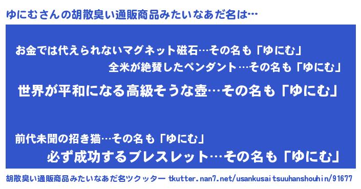 | ヘコむあだ名 | 『なまこ酢』『ゆににー』『ゆにを』 |