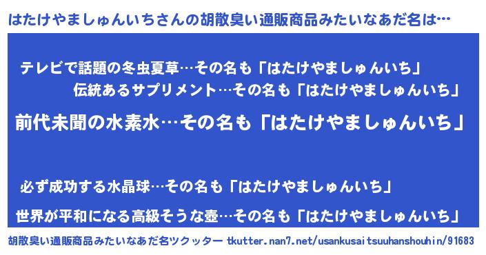 | ヘコむあだ名 | 『はたけやましゅんいち(遠い目)』『豆乳』 |