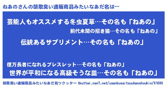 | ヘコむあだ名 | 『ねあを』『豆乳』『ねあの(苦笑)』 |