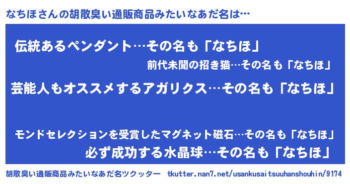 | ヒーロー風カッコイイあだ名 | 『最強戦士ナチホ』『幻影騎士ナチ』 |