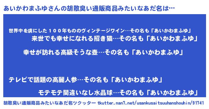 あいかわまふゆさんの胡散臭い通販商品みたいなあだ名をツクッター!