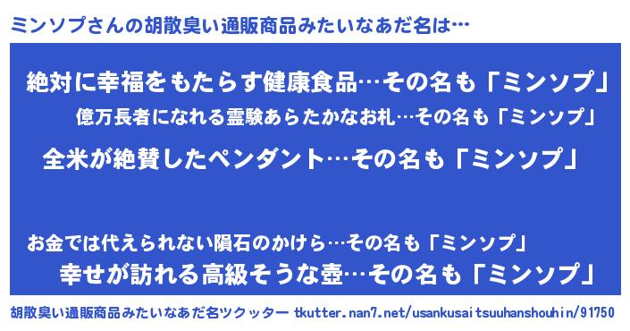 | 意味不明あだ名 | 『とにかく怪しいミンソプ』 |