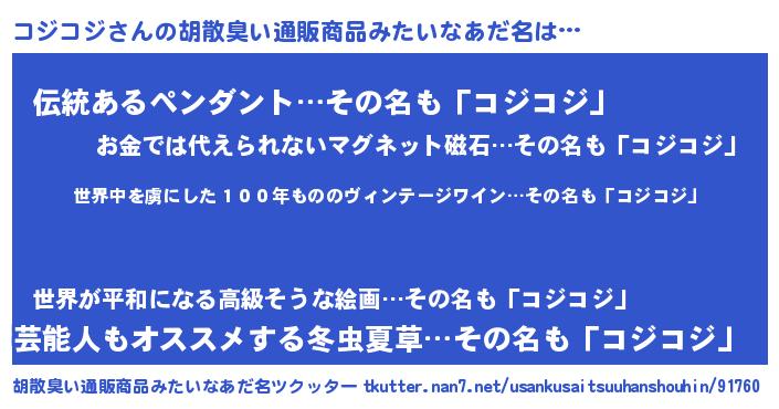 | ヘコむあだ名 | 『コジ太郎』『豆乳』『コジふぇ~』 |